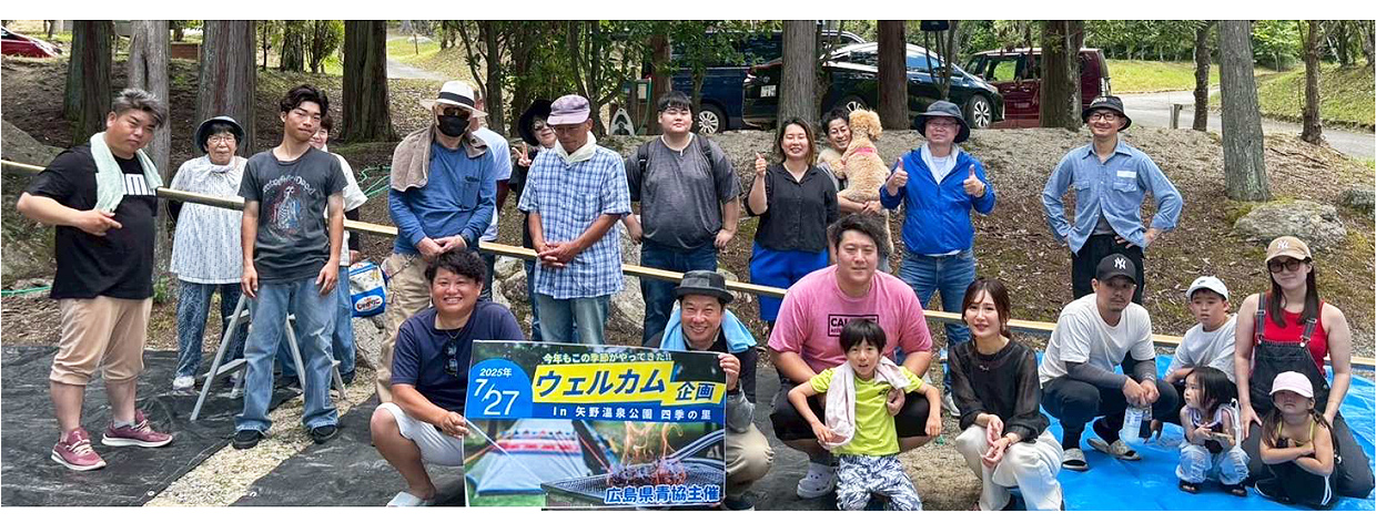 全青協は業者青年に魅力ある民商建設に向けた対策を強める取り組みとして「全青協50周年ウエルカム企画」を提起し、広島県青協では7月27日に矢野温泉公園・四季の里(府中市上下町)でそうめん流し&BBQ交流会を開催し、7民商から26名が参加しました。